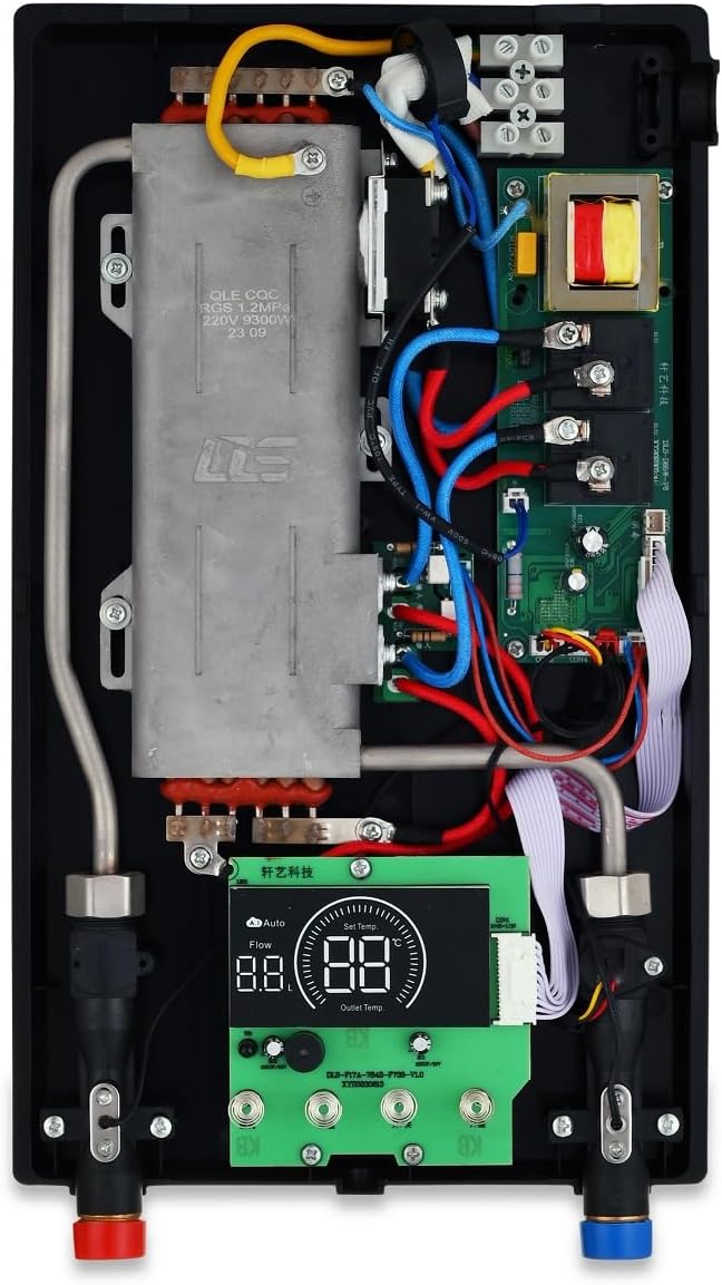 The heater is installed by the company. Installation outside the company voids the warranty. Install an external switch for the heater with a capacity of 40 amps. Connect an approved copper wire between the heater and the switch, measuring 4 to 6 mm. Connect an approved copper wire between the external switch and a switch designated for the heater in the distribution panel, measuring 6 mm². Dedicate a 40 amp electrical switch in the distribution panel for the heater. Always install the heater vertically. Install the heater so that the heater screen is visible to the user for early warning of malfunctions and to monitor the heater's performance. Sufficient for operating the master bathroom without a bathtub, or the guest bathroom and kitchen together.
