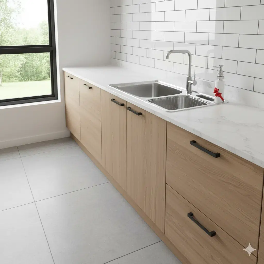 Designed with a specific depth to match the water flow force from the faucet to the bottom of the sink Water noise reduction (silent flow) Made of 304 stainless steel Rust-resistant Engineered with fast-drain technology Made in Korea