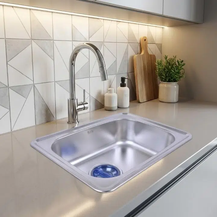 Purity kitchen sink CB 630 | 63 * 46 cm with accessories and drain Chrome Original price was: 991 EGP.Current price is: 791 EGP.