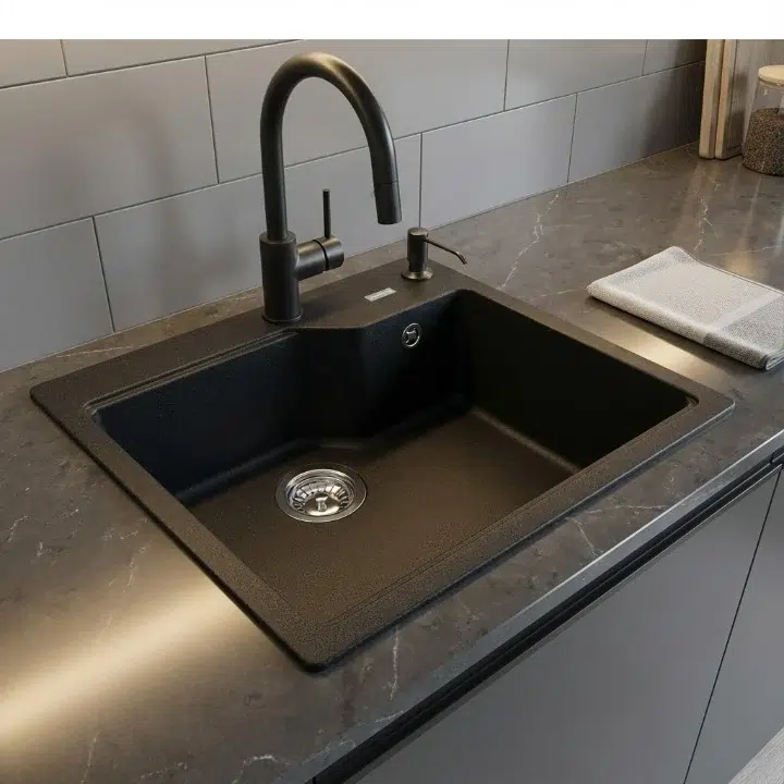 نقدم حوض مطبخ فرانكى إضافة مثالية لمساحة المطبخ الخاصة بك. مصنوع بدقة وأناقة، يضيف هذا الحوض لمسة جمالية إلى مطبخك. يتميز الحوض بشكل مربع أنيق، مصنوع من مواد الجرانيت عالية الجودة، ويتمتع بتشطيب ماط، مما يضفي شعورًا بالحداثة