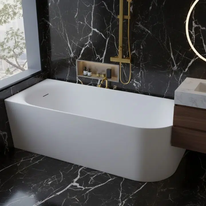 بانيو سيملس بتصميم موحّد بدون أي لحامات، يمنح حمامك مظهرًا فاخرًا وانسيابيًا بقطعة واحدة متكاملة. مصنوع من خامات عالية الجودة لضمان المتانة وسهولة التنظيف، ويعد اختيارًا مثاليًا لعشاق التفاصيل الراقية والديكور المودرن لما يقدّمه من راحة وأناقة وانسجام في كل زاوية.